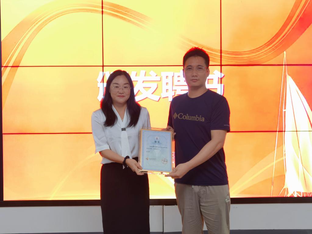 周瑶为张文武颁发创业导师聘书。张文武以幽默诙谐、通俗易懂的语言分享了拥有高学历的自己走上科技创业的原因。针对如何师生共创开展创业,他认为要具备商人思维,注重团队合作,维护积极的人际关系,积极寻求“贵人”帮助。