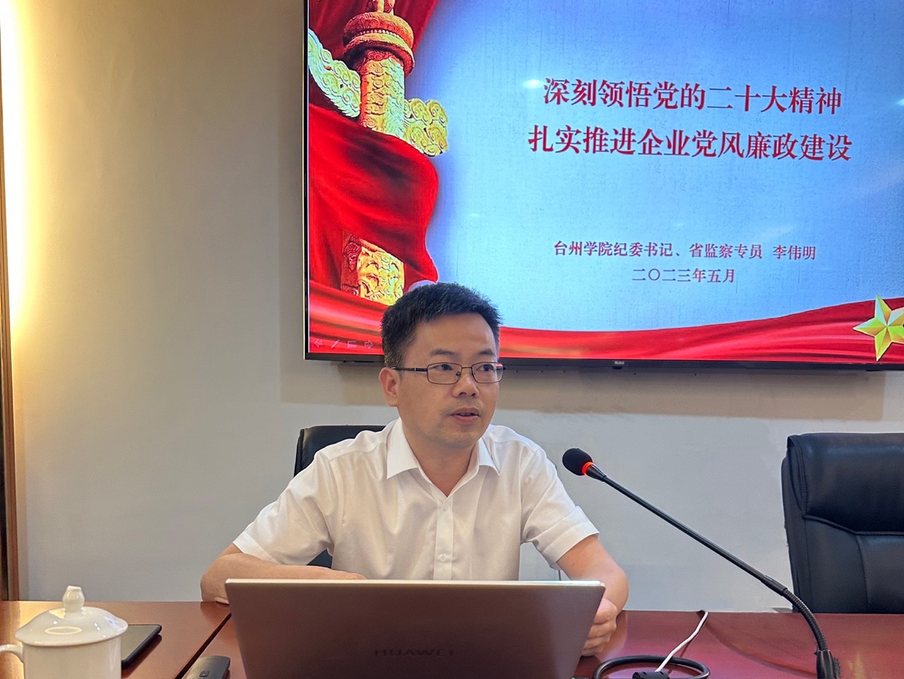 为深入学习宣传贯彻党的二十大精神,增强环科院有限公司党员干部拒腐防变的政治定力,5月31日,校党委委员、纪委书记李伟明应邀赴我校环科院有限公司,以“深刻领悟党的二十大精神 扎实推进企业党风廉政建设”为题,讲授了一堂精彩的廉政专题党课。此次专题党课由环科院有限公司党委书记陈海棠主持,公司中层以上干部、党员70余人参加学习。