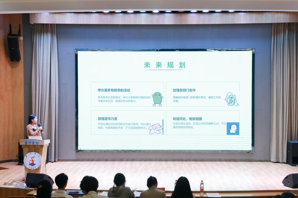 据悉,星级社团评选以汇报交流的形式,对过去一年社团发展情况进行总结分析,汲取经验教训并对未来做出规划。各社团互相学习、共促进步,共同承担起第二课堂的育人作用,为营造良好的校园氛围、促进学生的个性发展、培养学生的创造活力贡献力量。