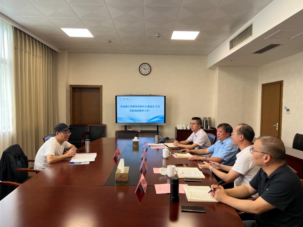5月19日上午,浙江省教育发展中心分管领导陈龙春来校调研指导学生资助工作,校党委副书记金先龙,学工部、学科处相关负责人陪同调研。
