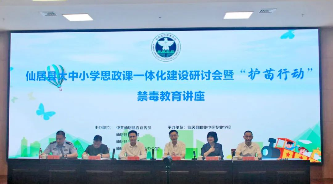 5月18日,仙居县大中小学思政课一体化研讨会暨”护苗行动”禁毒教育宣讲活动在仙居县职业中等专业学校举行。台州市大中小学思政课一体化研究中心主任、台州学院党委委员、宣传部部长金松,台州市大中小学思政课一体化研究中心首席专家、禁毒教育宣讲团负责人、台州学院马克思主义学院院长张天华,台州市大中小学思政课一体化研究中心副主任张礼强,仙居县委宣传部常务副部长吴凯,县禁毒办主任、县公安局副局长任康鑫,县教育局党委委员、总督学、仙居职业中专校长应良俊参加会议。金松、吴凯、应良俊作大会发言,任康鑫主持第一阶段会议。台州市禁毒教育宣讲团成员,仙居县初中、高中、中职校德育副校长、政治教研组长及仙居县职业中等专业学校师生代表参加会议并听讲座。