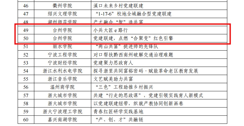 近日,中共浙江省委教育工委发布《关于公布全省高校校企地党建联建典型案例的通知》,我校“党建联建,点燃‘合聚变’红色引擎”“小兵大匠 e 路行”2个校企党建联建案例成功入选。