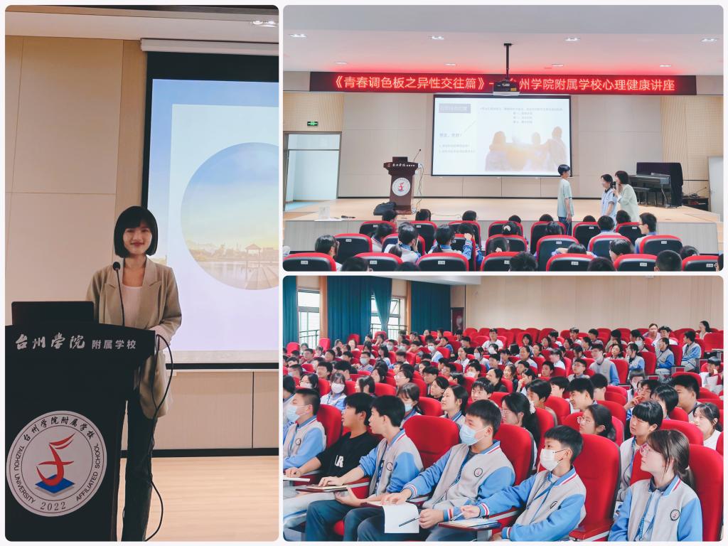 为助力青少年心理健康教育工作,加强与附属学校互助合作,5月5日,校心理健康教育与咨询中心副主任王蕴瑾应邀走进台州学院附属学校,为全体八年级学生作题为“青春调色板——异性交往知多少”的青春期心理健康教育讲座,300名附属学校师生参加讲座。