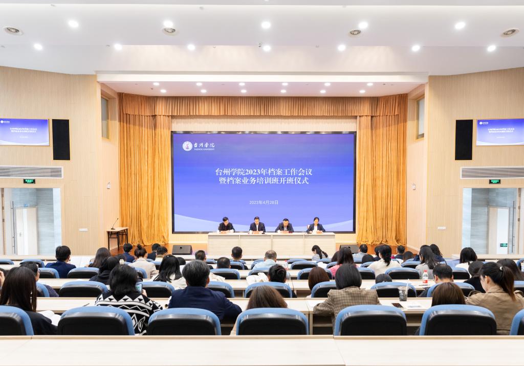 4月28日,学校在椒江校区国际会议厅举行2023年度档案工作会议暨档案业务培训班开班仪式。党委委员、副校长王正,党委委员、宣传部部长金松,台州市档案局原副局长、台州市档案馆原副馆长、台州档案学会理事长王茂焕出席,我校42个归档单位分管档案工作领导、专兼职档案员共70多人参加会议。