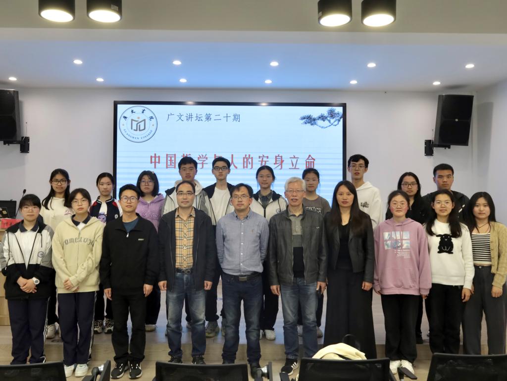 4月11日晚,广文书院在多功能厅举行了以“中国哲学与人的安身立命”为主题的第20期广文讲坛。浙江大学哲学学院教授、博士生导师何善蒙担任主讲嘉宾,大田中学老师王志顺、胡文焘,广文书院辅导员黄廷美,书院学员和部分大田中学学生参加此次活动,广文书院院长胡正武主持。