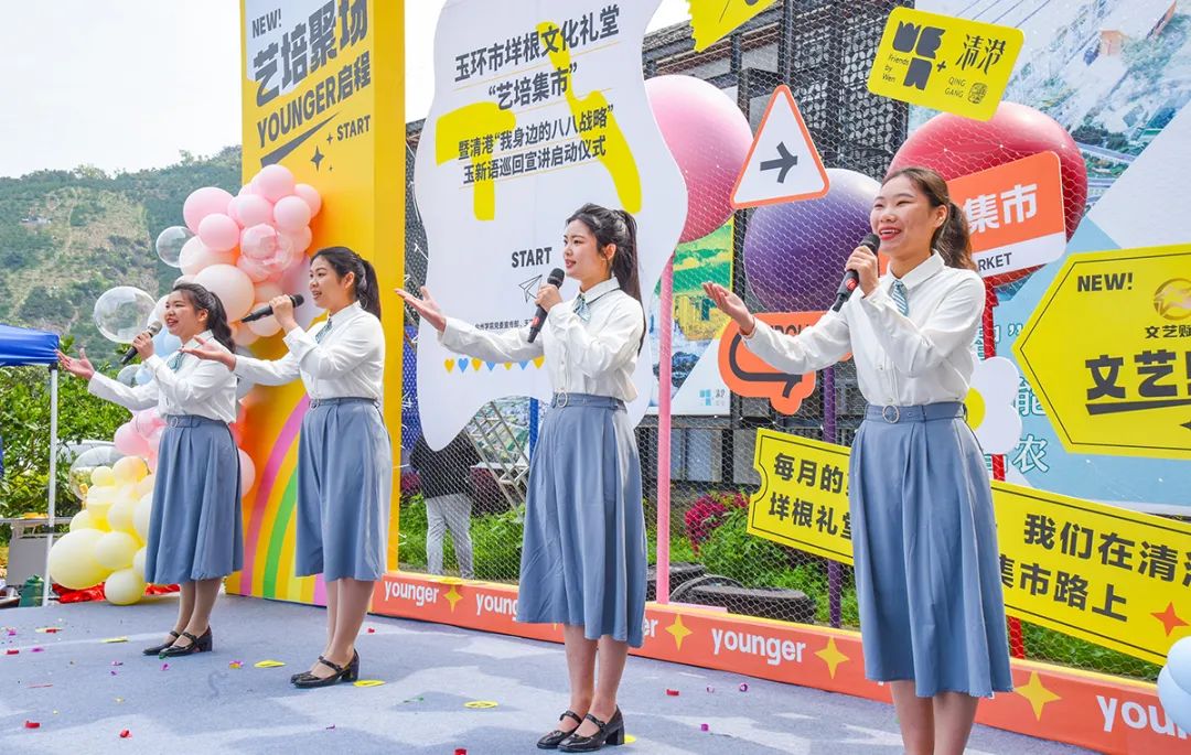 4月1日上午,玉环市垟根文化礼堂“艺培集市”暨清港“我身边的八八战略”玉新语巡回宣讲启动仪式在清港镇垟根村正式开幕。校党委委员、宣传部部长金松,玉环市委常委、宣传部长郑波,清港镇党委书记陈杨建等出席活动。