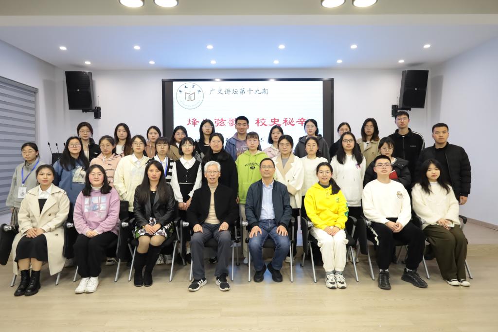 4月1日晚,广文书院在多功能厅举行了以“烽火弦歌,校史秘辛”为主题的第19期广文讲坛活动。广文书院院长胡正武应邀担任主讲嘉宾,广文书院辅导员黄廷美及部分书院学员参加,学工部副部长马斌主持。