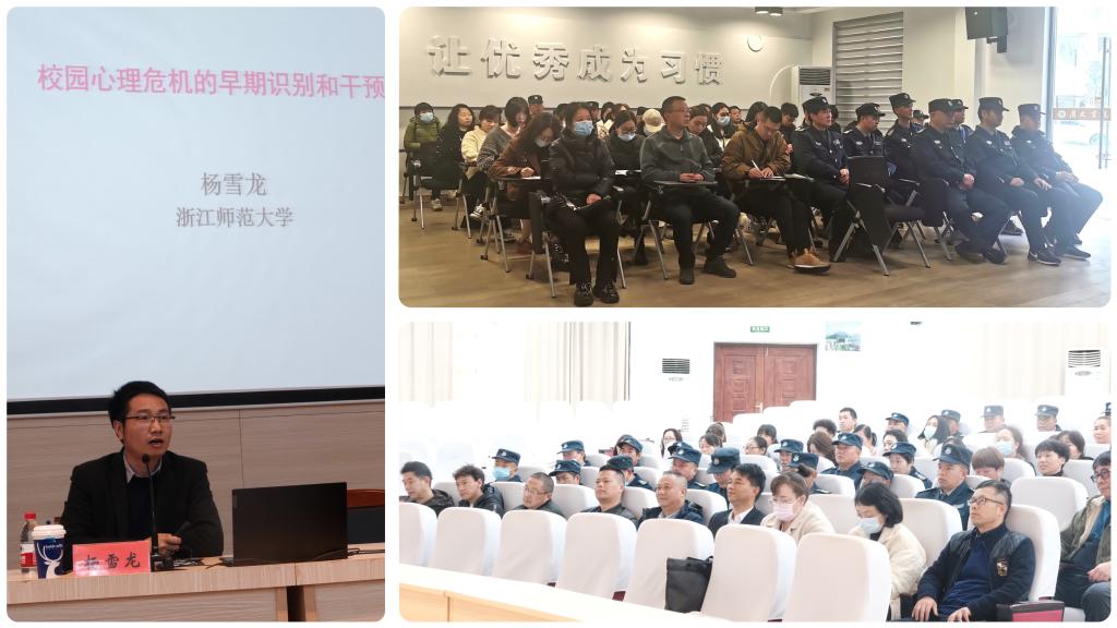 为进一步健全心理健康四级网络机制,提高校园心理危机干预工作的针对性、实效性。学校于3月31日分校区开展宿管、安保人员校园心理危机干预专题培训,浙江师范大学外国语学院党委副书记杨雪龙应邀主讲。学工部、后勤处、保卫处相关领导及全体宿管、安保人员参加本次培训,心理中心主任金彩云主持培训。
