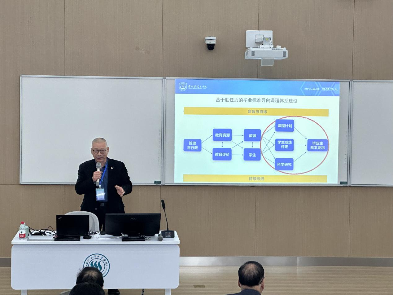 台州学院等12所高校在会上作了“四新”建设的经验分享。我校医学院梁勇教授作题为《胜任力导向的医学教育--新医科建设的台院实践与探索》报告。梁勇在报告中指出,台州学院临床医学专业紧密结合《中国本科医学教育标准-临床医学专业》和新医科建设要求,构建了四个核心胜任力领域和34个核心胜任力指标,并将每门课程与核心胜任力指标逐一关联,形成了基于胜任力的毕业目标导向的课程体系,突出了医学人文课程建设与课程人文建设的有机融合。数年的改革实践推动了教育教学质量的大幅提升,临床医学专业获评国家级一流专业建设点、省级一流学科,学生最近一年全国执业医师考试通过率位居全国高校前五,2022届学生升学率超过50%。台州学院医学教育将继续遵循新医科人才培养理念,不断探索医文、医工、理医的兼容与融合,培养满足行业发展需要、具有良好应用能力和发展潜能、拥有良好职业素养和终身学习能力的临床医学及相关人才。报告获得与会专家学者的良好评价与反馈,对我校OBE理念指导下的医学教育质量给予了充分肯定。