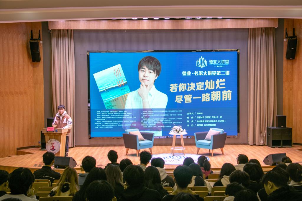 3月24日下午,“德业·名家大讲堂”系列讲座第二讲在椒江校区大学生活动中心开讲。百万畅销书作家、橙啦app首席内容官李尚龙应邀做客本次活动,作《若你决定灿烂 尽管一路朝前》专题讲座,椒江校区各二级学院师生和市民代表近两百人到场聆听。
