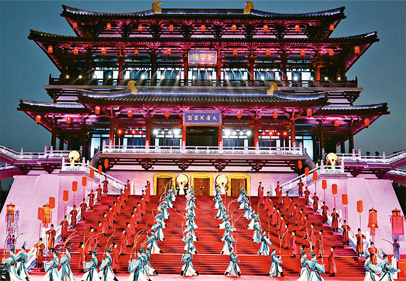 艺术无国界,文化共鸣成为拉近人民心灵的纽带。共享文化之美,中外文化和谐交融,为世界和平与发展注入动力。图为2023年5月18日,在陕西省西安市大唐芙蓉园拍摄的中国—中亚峰会欢迎仪式。 新华社记者 申宏/摄