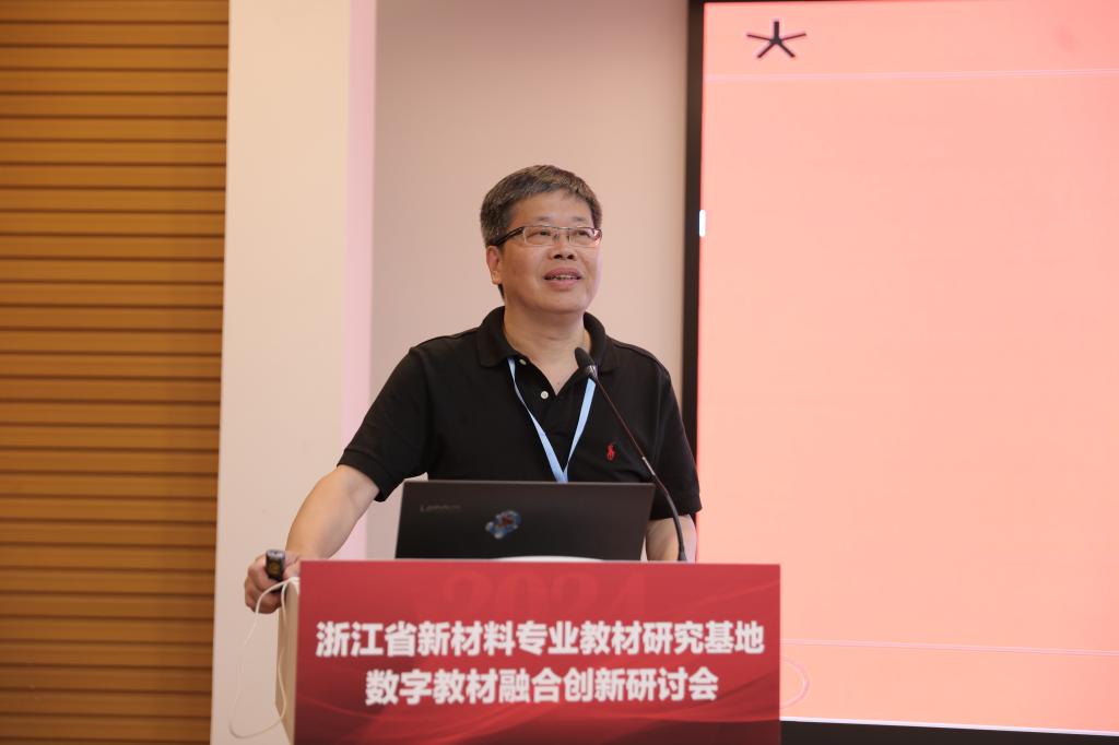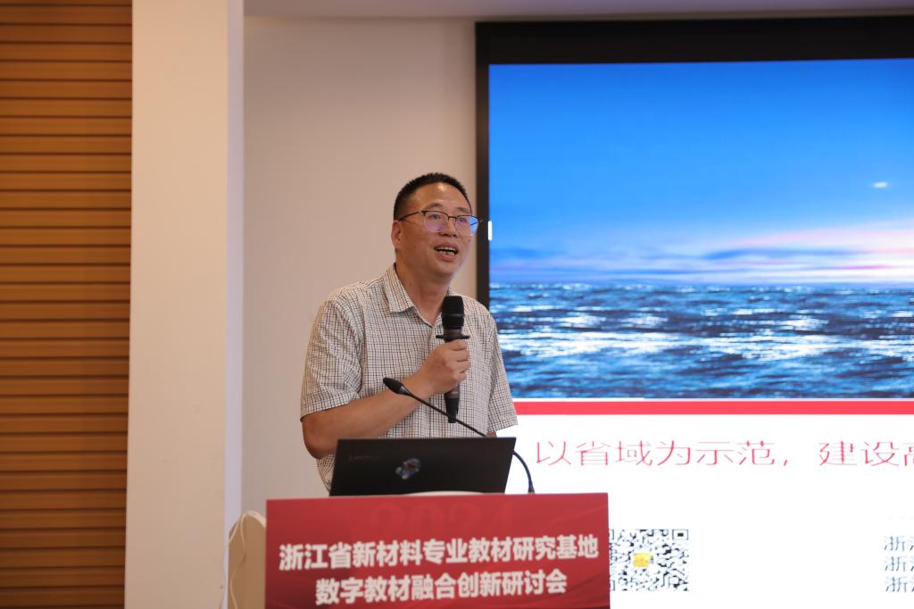 朱鸿飞在致辞中表示,浙江省高度重视教材工作,将教材工作作为提升教育教学质量和推进教育现代化的重要举措。朱鸿飞对浙江省新材料专业教材研究基地学科专业教材一体化及新工科教育智慧特色教材研究等方面做的一系列特色工作表示肯定。他对基地建设提出三点期望:一是明确方向,用心打造“培根铸魂、启智增慧”新时代浙派教材;二是精准定位,努力成为省新材料领域教材研究的高端智库;三是勇于创新,大力推动信息化浪潮下的数智教材融合创新。