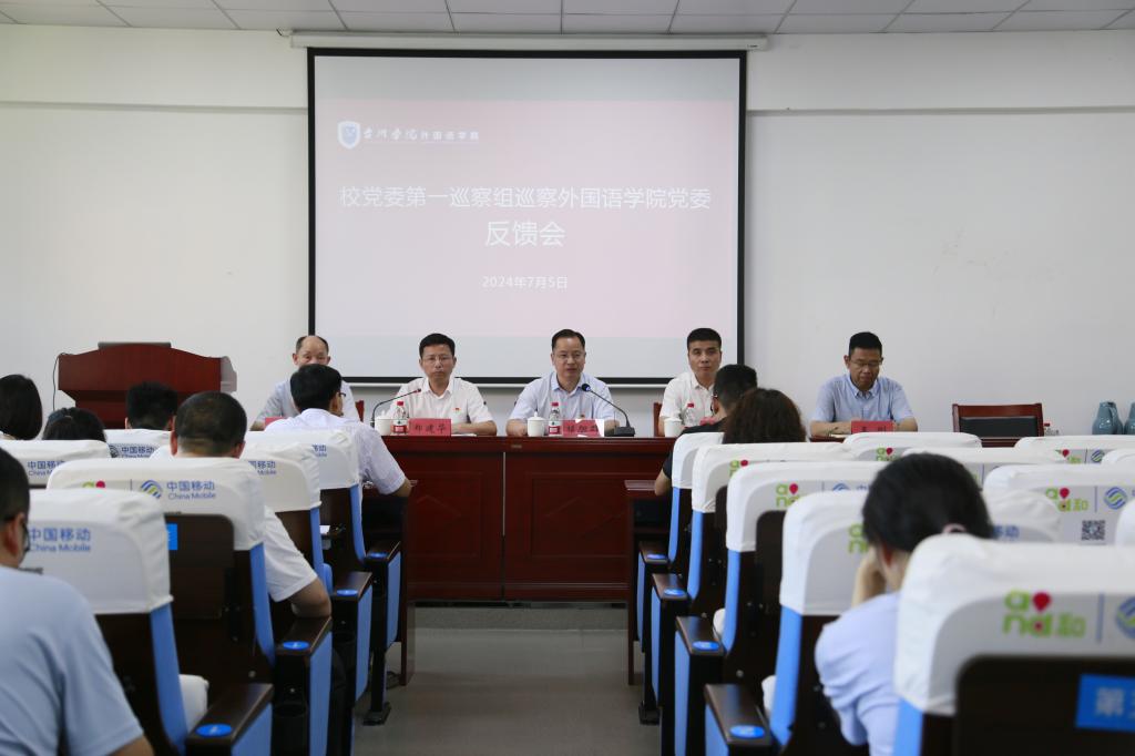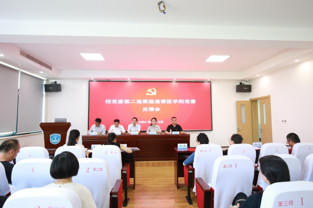 7月5日、8日,根据学校党委统一部署,校党委第一、第二巡察组分别召开巡察反馈会,先后向外国语学院党委和医学院党委反馈巡察意见。校党委委员、纪委书记、省监察专员楼胆群出席巡察外国语学院党委反馈会,校党委副书记项凤日出席巡察医学院党委反馈会。校党委委员、宣传部部长、第一巡察组组长蔡海江,校党委委员、人事处处长、第二巡察组组长郑丽君分别代表第一、第二巡察组反馈了巡察意见。校党委巡察办公室主任郑建华主持会议。