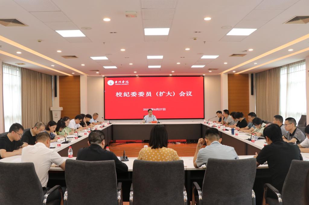 6月27日上午,学校召开纪委委员(扩大)会议。校党委委员、纪委书记、省监察专员楼胆群出席会议并讲话。校纪委委员、二级纪委书记(纪检委员)、清风宣讲团成员代表及纪检监察室干部参加会议。会议由校纪委副书记、纪检监察室主任郑建华主持。