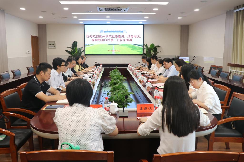 6月21日上午,衢州学院党委委员、纪委书记、监察专员陈烈荣一行来校考察交流。校党委委员、纪委书记、监察专员楼胆群出席交流会,纪检监察室(党委巡察办公室)、审计处、二级学院有关负责人参加。