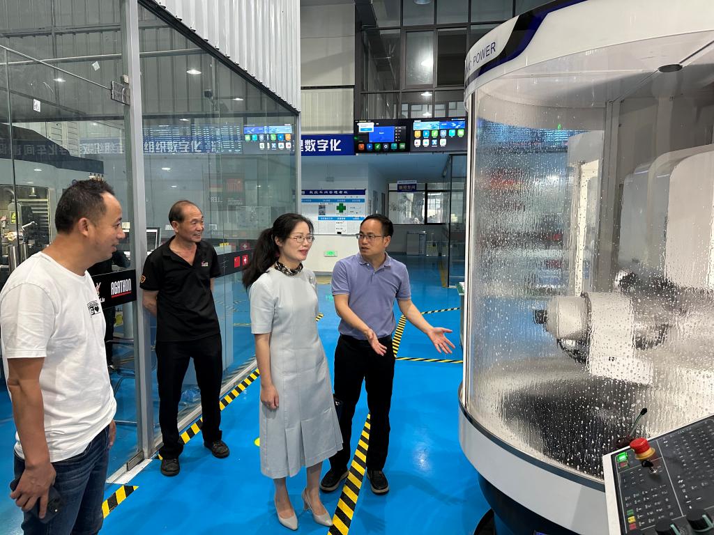 考察组一行深入生产车间、质检车间,实地参观了企业的生产环境,详细了解了企业的生产流程、技术创新以及企业文化。郑丽君在听取了三家公司负责人的详细介绍后,对三家企业在高端数控刃具的研发、设计、生产、销售以及技术支持方面的专业能力和现代化管理水平给予了高度评价。