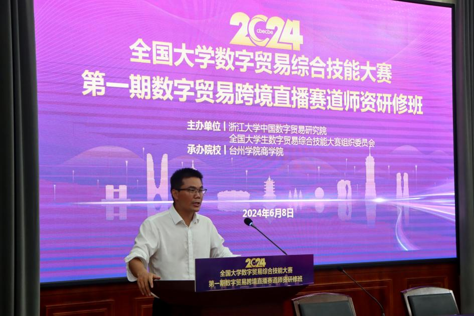 6月8日至9日,由浙江大学中国数字贸易研究院指导、全国大学生数字贸易综合技能大赛组织委员会主办、台州学院商学院承办的“2024年全国大学生数字贸易综合技能大赛第四期指导教师培训暨首期跨境直播师资研修班”顺利落下帷幕。本次研修班致力于推动数字贸易产学研用深度融合,以创新驱动数字贸易教育高质量发展。