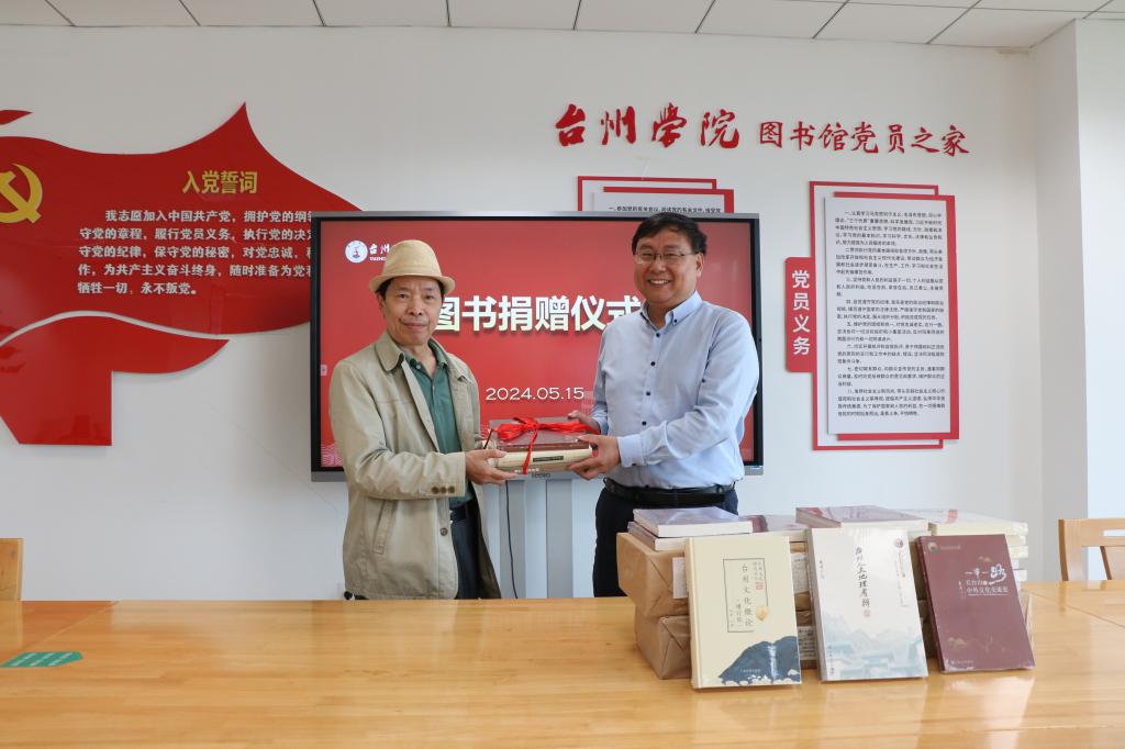 5月15日,台州历史文化研究资深学者周琦先生向我校图书馆慷慨惠赠其编著的《台州文化概论》(增订版)、《台州人文地理考辨》《一带一路--天台山与中外文化交流史》等50余册学术研究书籍,为我校图书馆地方文献资源建设注入了新的活力,图书馆馆长吴世永接受赠书并回赠收藏证书。