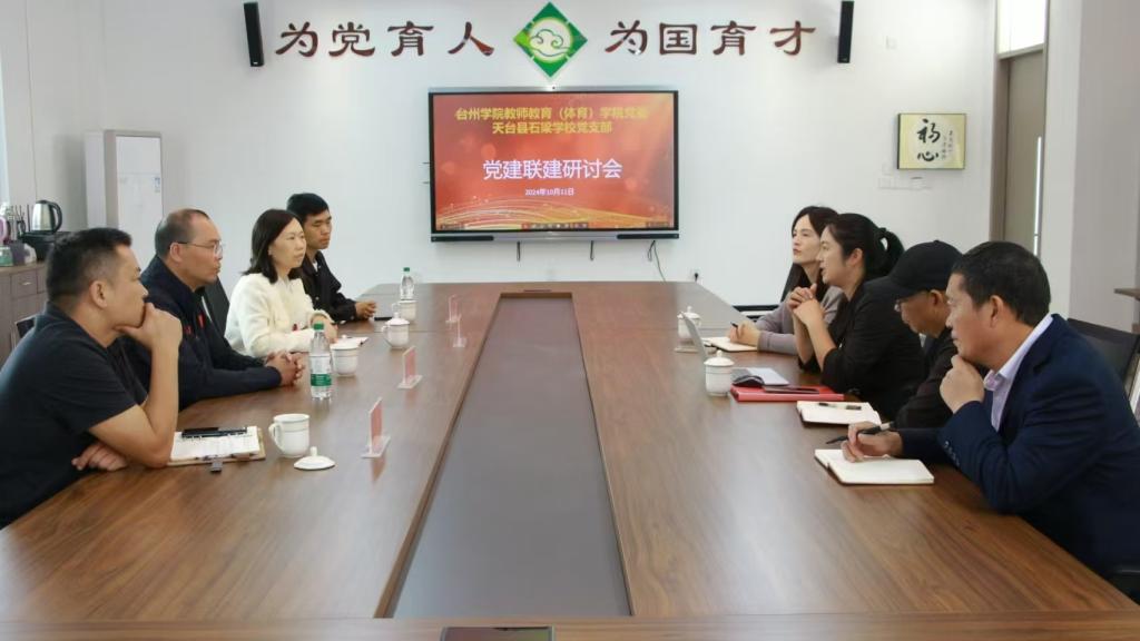 10月12日,教师教育(体育)学院党委书记林辉杰一行赴天台县与天台县石梁学校举行了党建联建研讨会。学校组织部副部长许利敏、学院党委副书记吴磊、党委委员葛福强参加会议。