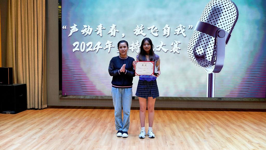 经过初赛选拔,共有8名选手进入决赛。决赛由个人展示、即兴主持、现场问答三部分组成。比赛过程中,每位选手都以饱满的热情投入到每个环节,充分展示出个人的表达能力、理解能力和逻辑思维能力,精彩的表现赢得阵阵掌声,为在座观众呈现了一场视听盛宴。现场精彩不断,气氛热烈,经过激烈角逐,最终叶紫妮获得一等奖,朱烜徵、黄耀梅获得二等奖,蔡秋垚、刘清获得三等奖。