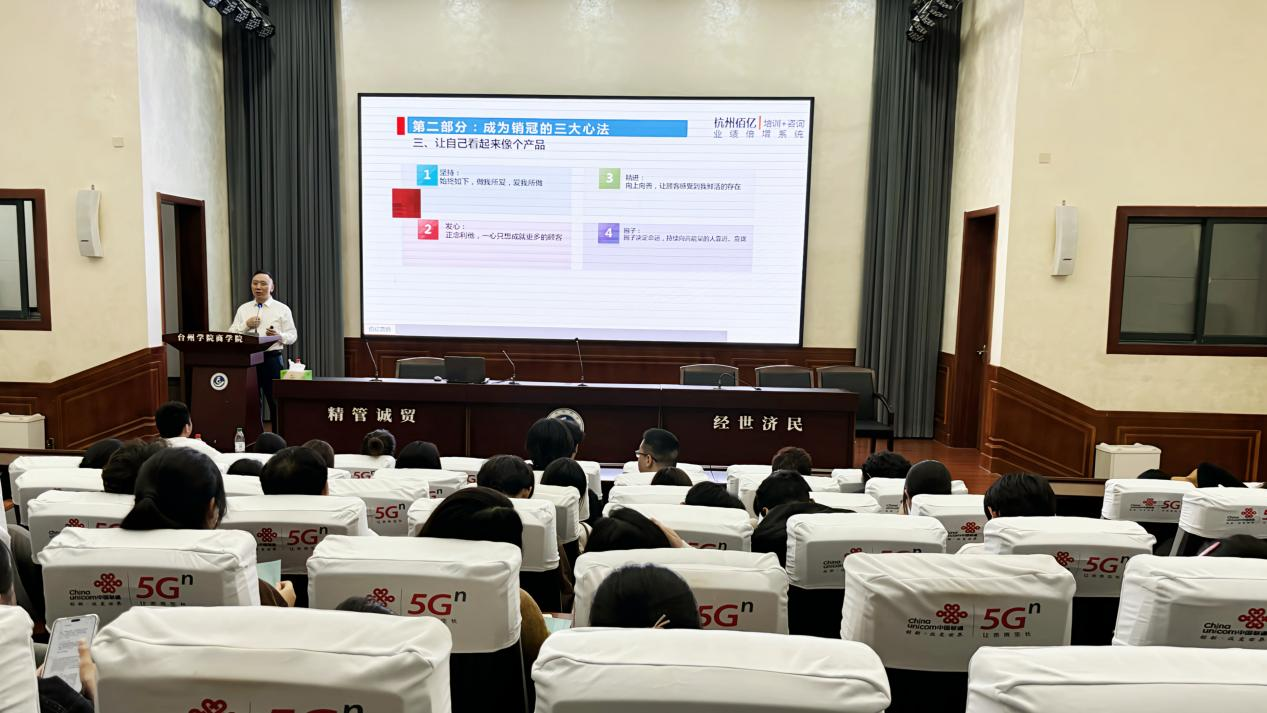 为提高同学们的营销技能,助力学生实现高质量就业,11月11日晚,商学院在506报告厅举行“职引未来”高质量就业讲座第二十一讲。本次讲座特邀佰亿管理咨询董事长业绩倍增陪跑开创者吴忠会作为分享嘉宾,商学院党委书记马斌主持,国际经济与贸易专业大二大三学生参加。