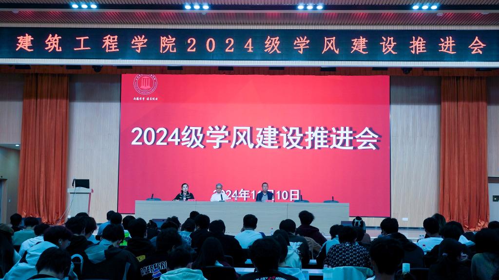 为全面推进学风建设、帮助2024级新生明确大学目标,11月10日晚,建筑工程学院于科技综合楼3楼学术报告厅举行2024级学风建设推进会。院长王小岗、副院长熊浩、2024级新生班主任及全体新生出席本次会议。会议由院党委副书记汤爽主持。