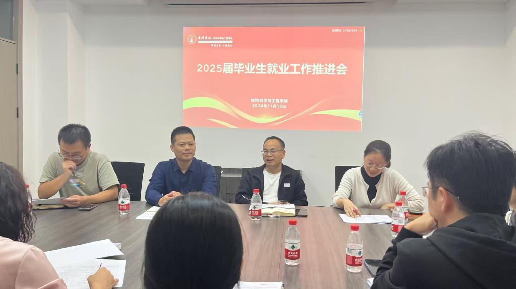 为了进一步做好2025届毕业生就业指导和服务工作,推进学院毕业生充分就业和高质量就业,材料科学与工程学院于11月12日在B-238会议室召开2025届毕业生就业工作推进会。学院党总支书记吴建波、全体系主任、毕业班班主任、辅导员参加,会议由材料学院党总支副书记李文兵主持。