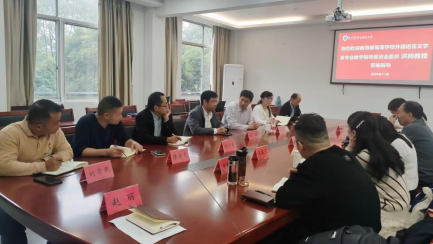 11月14日下午,外国语学院召开硕士研究生培养咨询会,邀请了教育部高等学校外国语言文学类专业教学指导委员会委员洪岗教授指导学院硕士研究生培养工作。外国语学院院长王刚、院党委书记李涛、副院长卢立伟和全体硕士研究生导师参加会议。