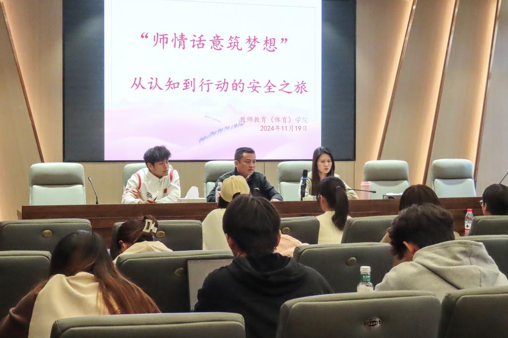 为提高同学们安全意识,共筑安全防线,11月19日,教师教育(体育)学院于5302举办了以“从认知到行动的安全之旅”为主题的师生座谈会。院党委副书记吴磊、辅导员朱浩楠以及22级、23级、24级各班的安全信息员参加会议。