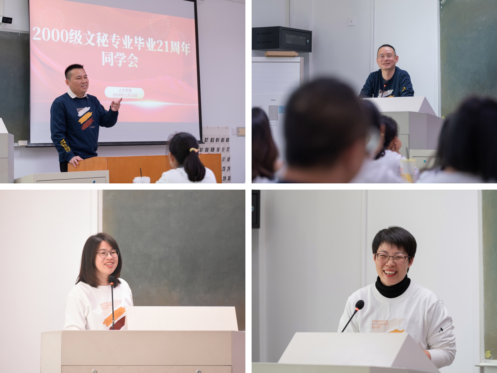 共忆青葱岁月,再叙昨日情谊。2000级文秘班毕业21周年座谈会在她们熟悉的1307教室举行。林军辉副书记代表学院对重回学校的校友们表示热烈的欢迎,向活动的成功举办表示热烈祝贺。他详细介绍了学校和学院目前的发展现状,对校友们为学院建设和发展所作出的贡献表达了诚挚感谢。他指出,校友永远是学院最宝贵的财富和资源,是学院事业发展最坚实最可信赖的力量,希望校友们继续一如既往地支持学院的建设,为学院高质量发展提出宝贵的建议。在座谈交流环节,校友们分享了大学毕业后各自的工作经历以及重回母校的感受。大家畅谈20年前的青葱岁月,感慨岁月变迁,座谈会现场欢声笑语,掌声此起彼伏,现场洋溢着温馨与和谐的氛围。