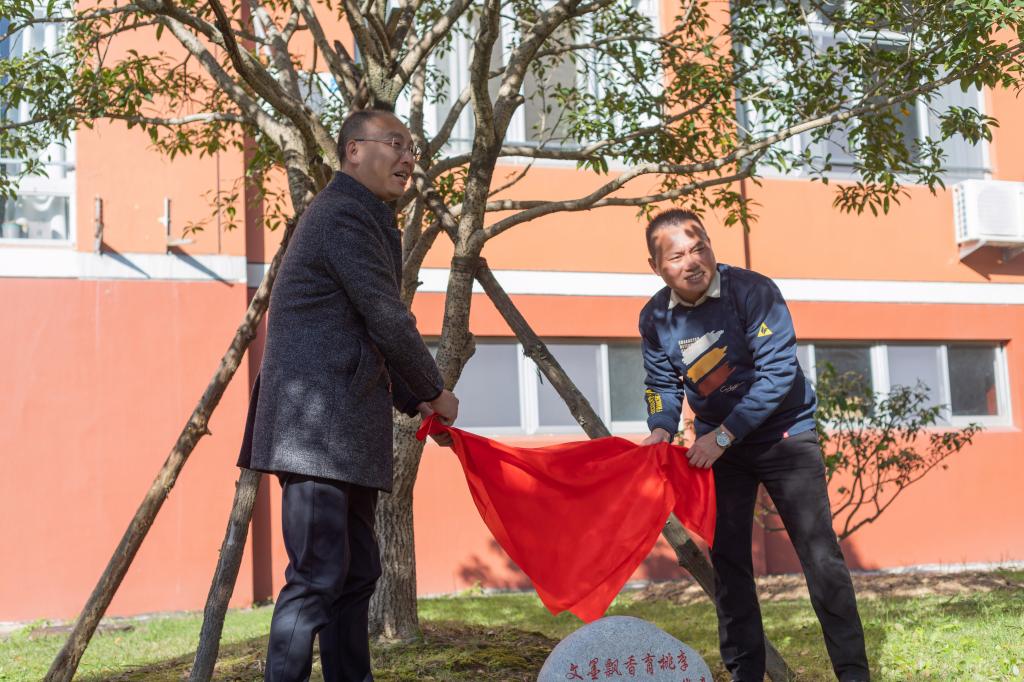 认领校友树,留下母校情。2000级文秘班在聚会前夕,跟学校相关部门和学院沟通后认领了一棵桂花树,当天下午,二十位校友为桂花树松土,一起揭开桂花树前石碑上的红布。石碑上一首藏头小诗“文墨飘香育桃李,秘笺流韵谱华章”映入眼帘。随后,校友们在桂花树前合影留念。