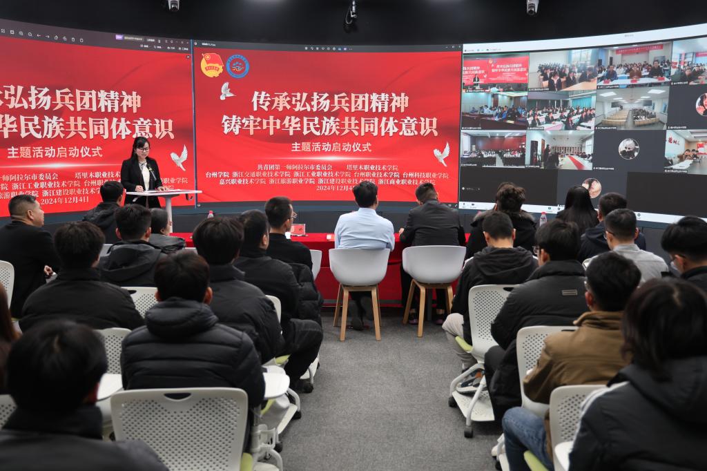 12月4日,共青团第一师阿拉尔市委员会、塔里木职业技术学院与浙江九所高校跨越千里,在“云”端联合开展了一场主题为“传承弘扬兵团精神 铸牢中华民族共同体意识”的特别活动。台州学院党委组织部副部长林霖出席启动仪式,智能制造(航空工程)学院党员师生作为台州学院代表参加了此次活动。