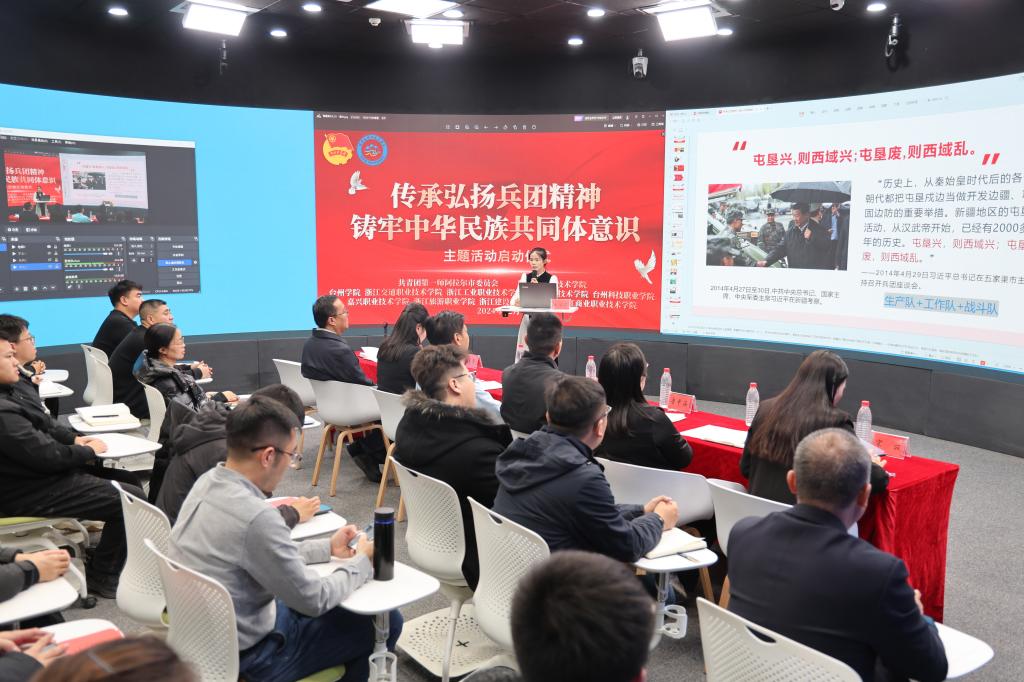 本次活动由共青团第一师阿拉尔市委员会、塔里木职业技术学院联合主办,旨在通过加强浙阿两地高校之间的合作,深化思政教育,铸牢中华民族共同体意识。来自台州学院、浙江交通职业技术学院、浙江工业职业技术学院、台州职业技术学院、台州科技职业学院、嘉兴职业技术学院、浙江旅游职业学院、浙江建设职业技术学院、浙江商业职业技术学院九所浙江高校的师生代表线上参与此次活动。