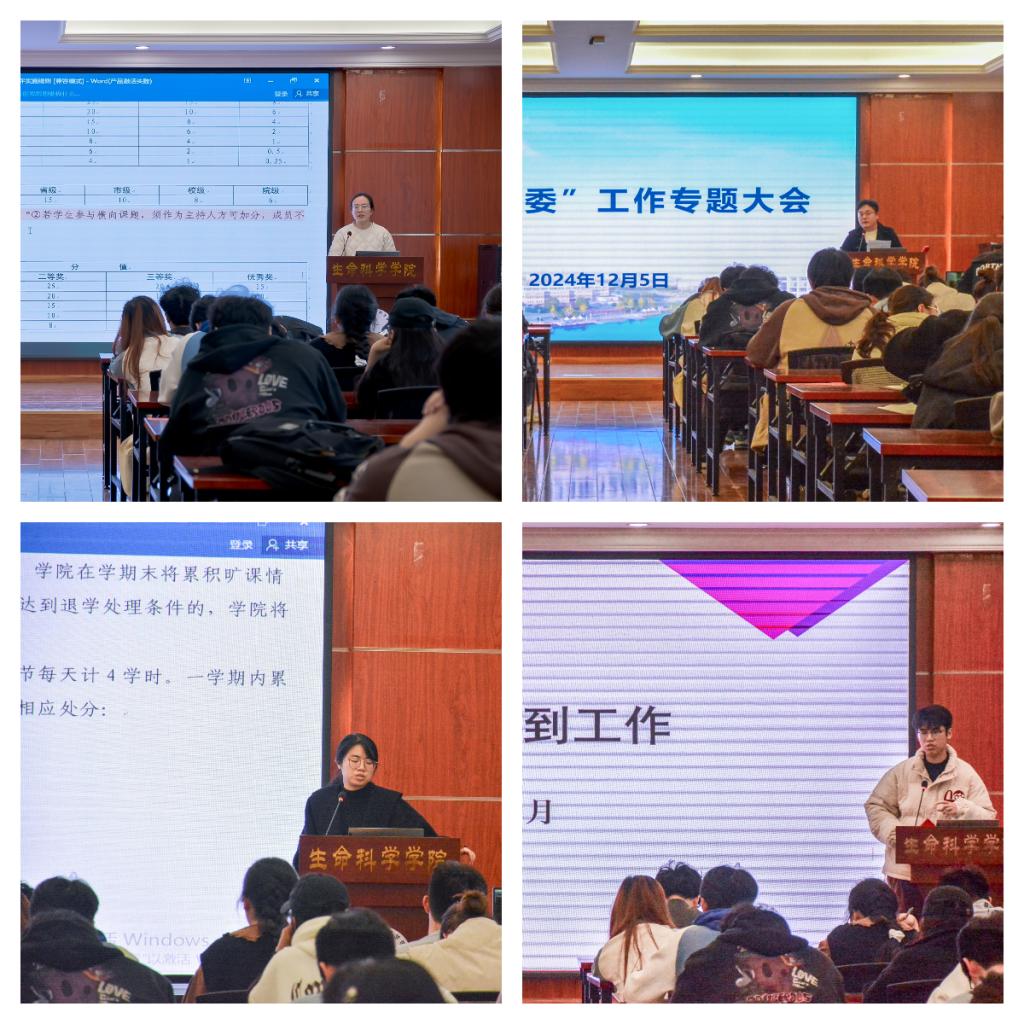 12月5日下午,生命科学学院在学院大会议室召开“四委”学生干部工作专题会议,学院党委副书记翁添富出席,各专业辅导员、班级学习委员、生活委员、心理委员和安全信息员及团学会学生干部参加,会议由学工办主任陈佳阳主持。