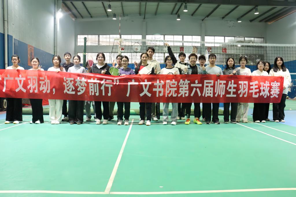 为增进师生感情,培养团队精神,提高学生的身体素质,12月5日下午,广文书院在临海校区室内羽毛球馆举办了以“广文羽动,逐梦前行”为主题的师生羽毛球赛。广文书院副院长金旭球、辅导员黄廷美、书院部分导师和学生参加此次活动。