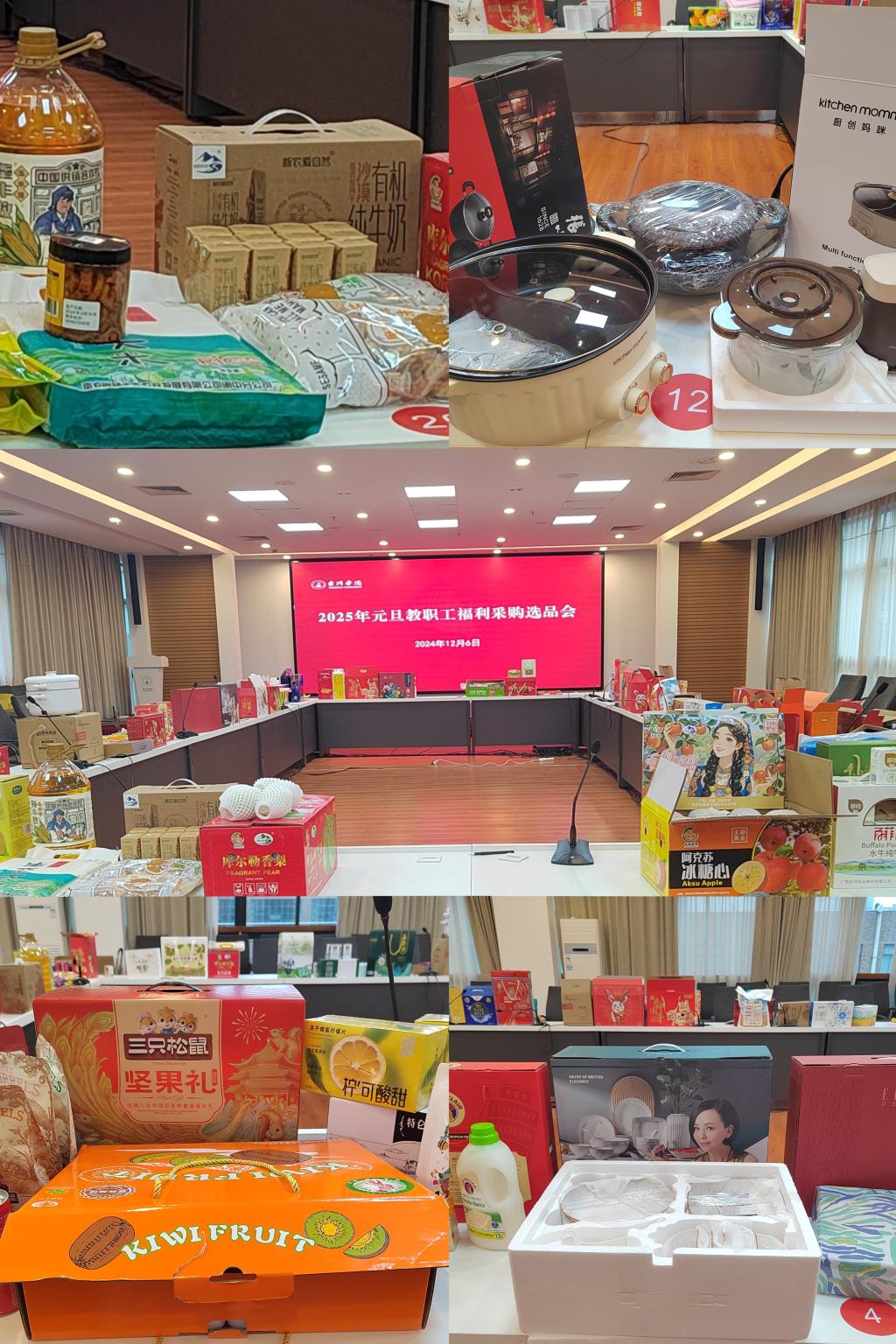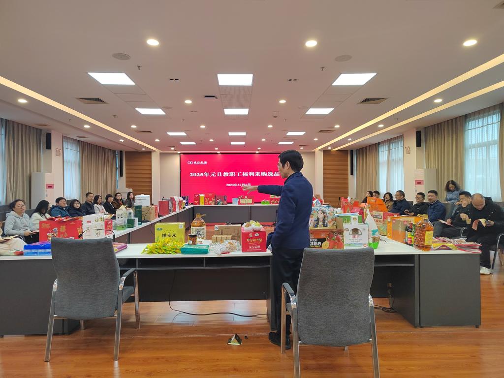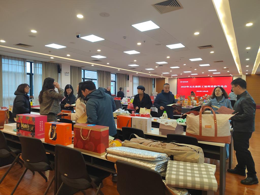 元旦的脚步已悄然临近,如同晨曦初露,预示着新的一年即将拉开序幕。为表达对全校教职工辛勤付出的诚挚感谢与深深祝福,我校于12月6日在椒江校区行政楼四楼第二会议室举办了教职工元旦福利采购选品会,旨在通过民主投票的方式,共同决定教职工的元旦福利品。此次活动汇聚了7家优质供应商,带来共21组精心设计的组合套餐及34个独立单品,涵盖粮油食品、日用品、健康产品等多个类别,各类产品琳琅满目,以满足不同教职工的需求和喜好。