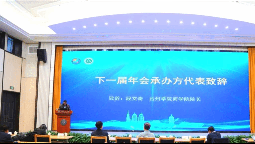 台州学院商学院院长段文奇作为下一届年会承办方代表致辞