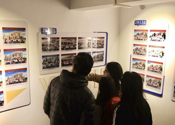 随后,校友们参观了学校校史馆,学院校友文化墙、党建文化墙、台州小微金融展厅等。校友们在校友文化墙的历年毕业照中,纷纷寻找着青涩的自己,话语中满是感慨与怀念。在党建文化墙前,感受着学院党建工作的扎实成果与红色精神的传承。在台州小微金融展厅里,校友们惊叹于台州小微金融的蓬勃发展,回忆起往昔在学院的学习时光,心中满是对学院的自豪。