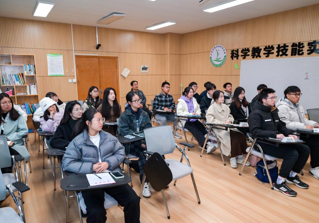 12月7日下午,生命科学学院在学院科学教学技能实训基地举办第二十期“生命有约”大学生成长沙龙活动。金京生、杨周辉两位校友应邀为22科学教育卓越班全体学生作讲座,活动由班主任白义主持。