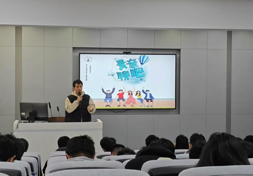 活动中,周洪鹏学长从在校期间的专业课学习、学术研究以及学科竞赛等方面分享学习经历,为学弟学妹们的学业生涯规划提供指导,叮嘱大家珍惜在校大好时光;随后,他分享了毕业后的职场经历以及职业发展中遇到的挑战和成长,为学弟学妹提供从校园到职场过渡的实用建议,激励他们积极参与校园活动提升能力,促进个人全面发展,为将来的职业生涯奠定坚实基础;最后,就同学们提出的学业、生活、未来规划等方面的问题进行答疑和互动交流,现场气氛热烈。