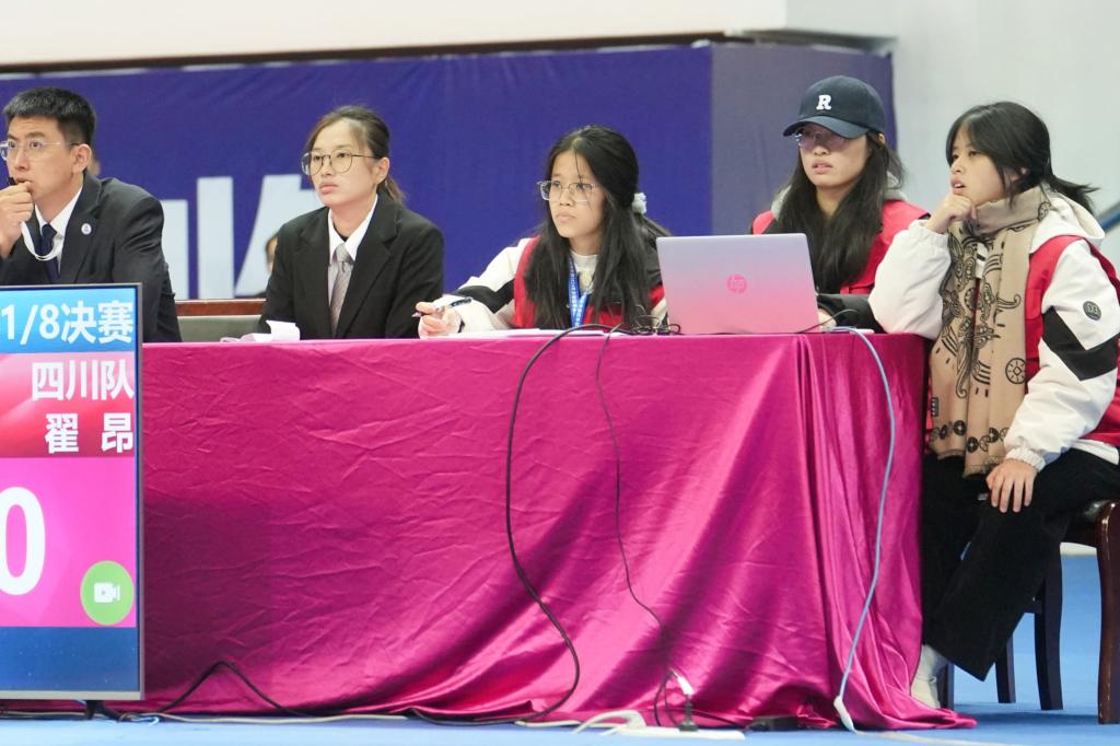比赛期间,志愿者们身着统一服装,坚守在各自岗位。负责赛事检录的志愿者一丝不苟地核对参赛人员身份信息,确保人员到场情况准确无误,并检查其护具穿戴是否合规,保障比赛顺利开展;参与计时记分的志愿者则全力协助裁判员,精确地进行计时和记录比赛分数,确保比赛结果的公正与准确。