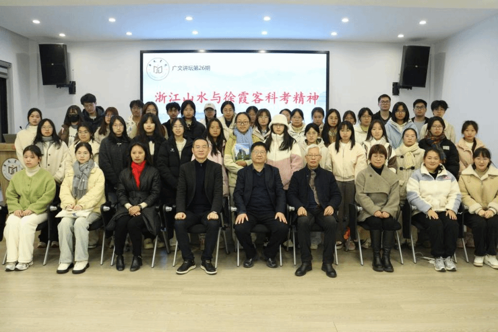 12月17日晚,广文书院在多功能厅举办了以“浙江山水与徐霞客科考精神”为主题的第26期广文讲坛。此次活动特邀中国地质学会徐霞客研究分会理事、浙江省徐霞客研究会副秘书长张小宇担任分享嘉宾,广文书院院长胡正武、副院长金旭球、校友林大岳、教师教育学院徐薇老师以及部分书院学生参加。