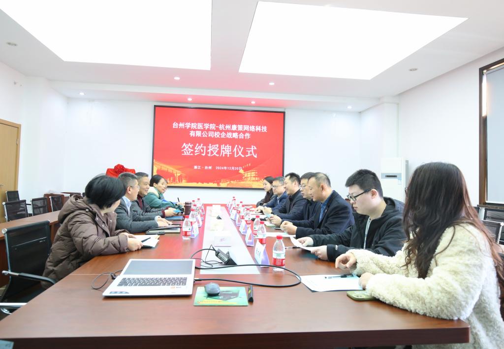 12月20日,医学院与杭州康策网络科技有限公司在A305会议室举行校企战略合作签约仪式。医学院党委书记林海斌、副院长陈光、杭州康策网络科技有限公司董事长何吉刚及相关部门负责人出席,两方工作人员陪同。会议由陈光主持。
