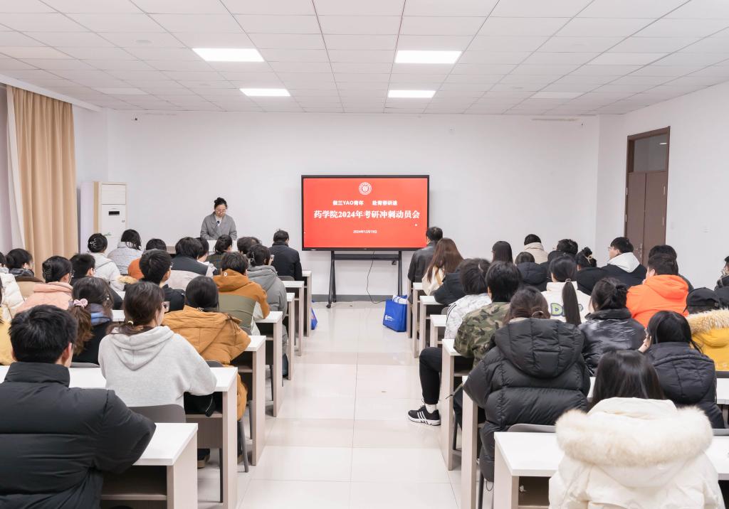 12月19日下午,药学院举行2024届学生考研冲刺动员会。学院全体领导班子出席,学院党总支副书记高阳主持。2024年考研学生、2022级部分学生参加。