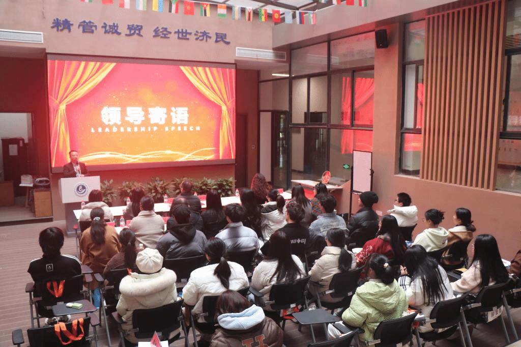 活动在庄重的氛围中拉开序幕,首先由马斌发表开场致辞。他深刻阐述了“利学堂”创立的深远意义,强调这一平台对于提升国际贸易专业学生的竞争力以及助力他们提前融入职场环境的重要作用。马斌对在场的学生寄予厚望,提出了三点建议:广泛求知,勇于质疑;深思熟虑,明辨是非;脚踏实地,勤勉实践。他鼓励学生们充分利用“利学堂”这一宝贵资源,拓宽视野,将所学知识灵活应用于生活实践之中。