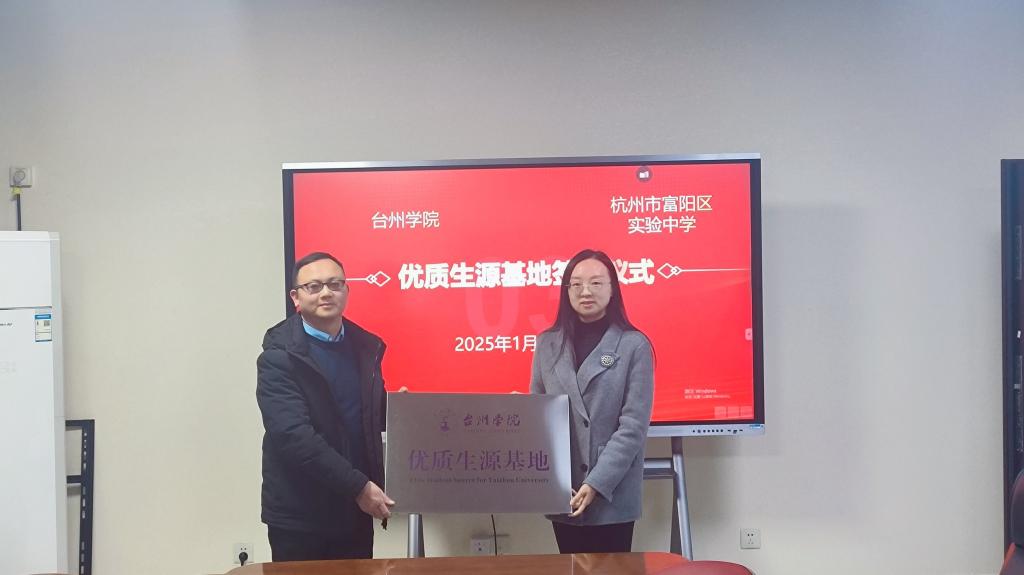 为深入推进我校优质生源基地建设,形成与生源地高中协同育人机制,1月7日,商学院党委书记马斌、党委副书记陈斌岚一行前往杭州市富阳区实验中学签订“优质生源基地”共建协议书。杭州市富阳区实验中学副校长胡小华带领班子成员热情接待。