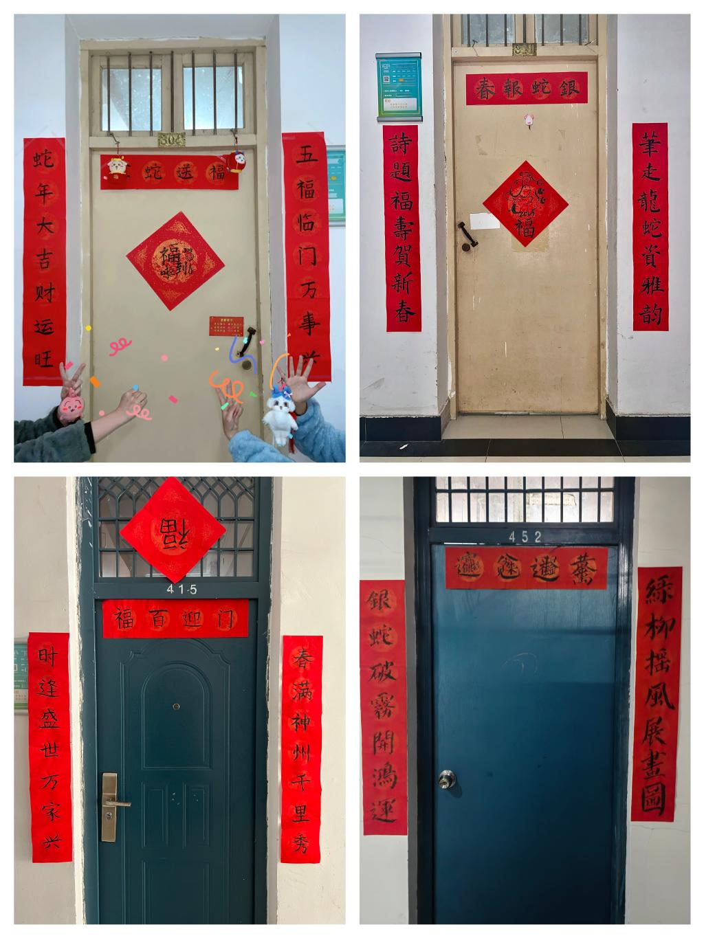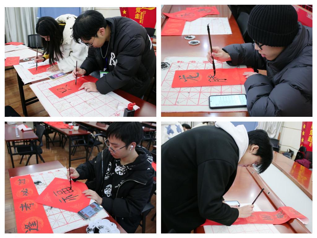 活动现场墨香满溢,各寝室的同学们齐聚一堂,挥毫泼墨,以崭新的蛇年为灵感源泉,匠心独运地勾勒梦想,于一笔一划间倾吐对新年的灼灼期许。书写字体更是百花齐放:楷书端正秀丽,行书飘逸洒脱,为这场大赛氤氲出多样的艺术韵味。