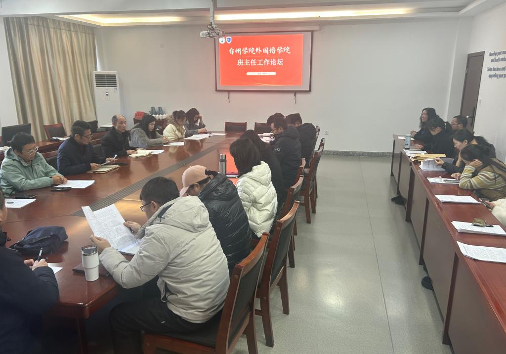 为扎实推进班主任队伍建设,切实提升育人质量,1月11日,外国语学院在四号楼一楼会议室举办班主任工作论坛。学院党委书记李涛、全体班主任及辅导员代表出席,党委副书记鲁建波主持。