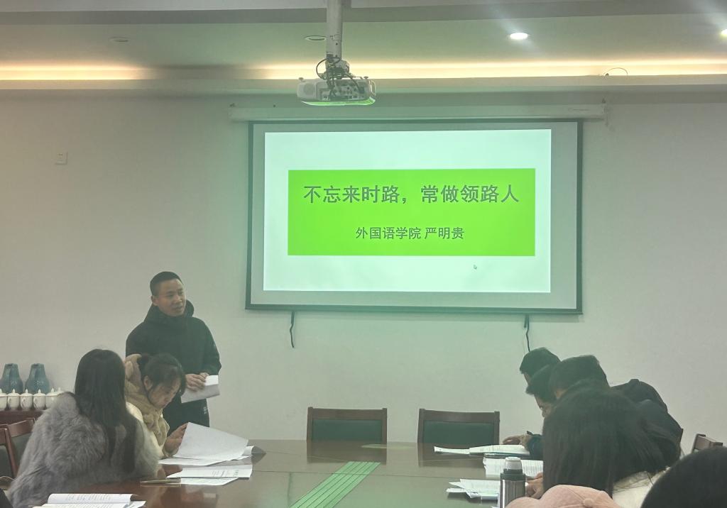 在优秀班主任工作交流环节中,严明贵老师以《不忘来时路,常做领路人》为题,分享了班级管理的四点独到心得:一、不给领导和辅导员带来麻烦;二、爱生如爱子,教书亦育人;三、鼓励学生每天进步一点点;四、表扬用红榜,批评用电话。严老师所带班级在专四考试中通过率高达 100%,这一耀眼成绩背后,是他日复一日对学生的爱心关怀与积极鼓励。随后,毛静林老师向大家娓娓道来她帮助班内学生实现100%就业背后的主客观原因。毛老师以“一条底线、一个认识、三个问题”的原则并分前、中、后三期来展开具体工作事宜,她对各类就业形势的深刻分析与对班内每一位学生的深度交流与针对性指导,均彰显其在就业工作中的细心与无私奉献精神。