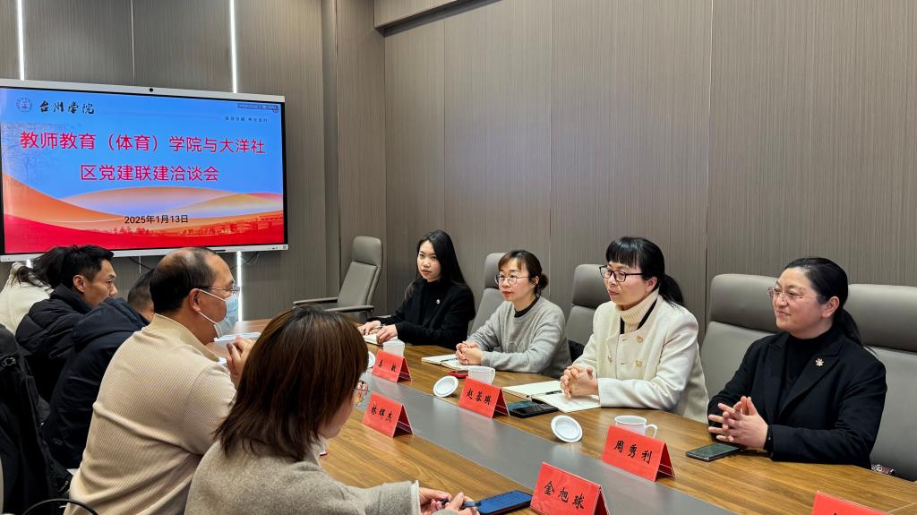 为进一步加强基层党组织建设,整合学校、社区优势资源,促进学校与地方互助共赢,1月13日下午,教师教育(体育)学院与大洋社区开展“校社融合”党建联建洽谈会,大洋社区党总支书记周秀利一行四人参加会议,学院党委书记林辉杰、副书记吴磊及相关老师参加洽谈会。